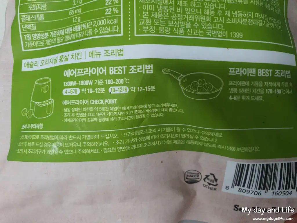 다른 에어프라이어용 치킨에 비해 딱히 다른 점은 보이지 않습니다.