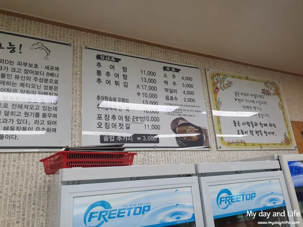 추어탕은 한 그릇 먹으면 원기회복이 될 거 같은 느낌이 팍 드립니다.